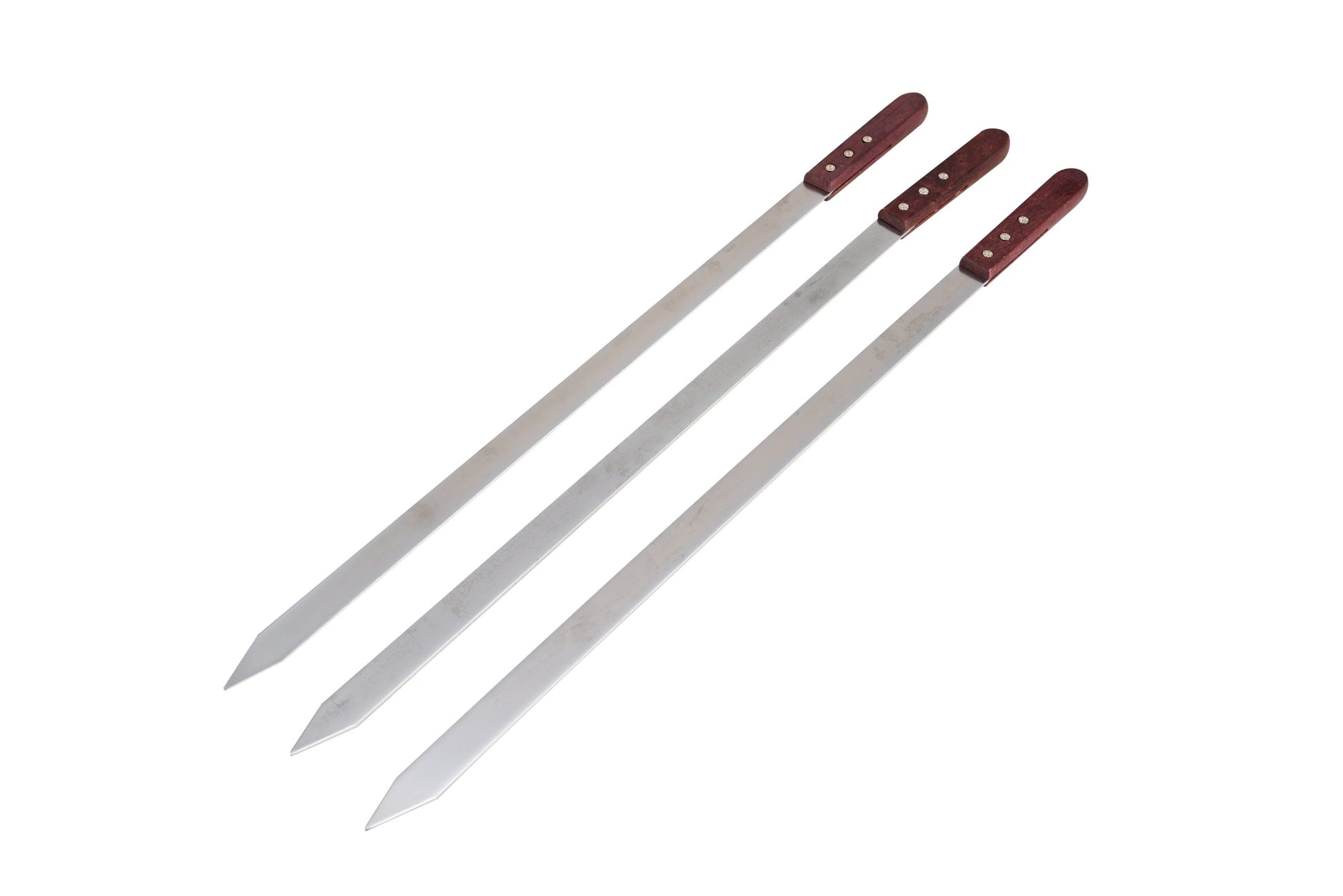 3er Grillspieß-Set aus Edelstahl und mit Holzgriff, Partyspieß für Adana-Kebab