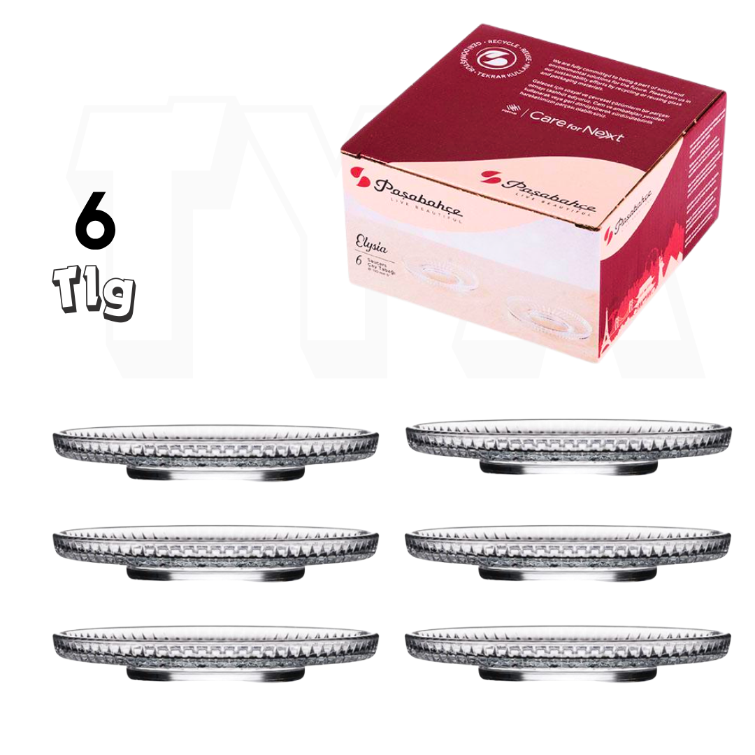🫖 Pasabahce Elysia – 6-teiliges Teeteller Set (Ø 13 cm)