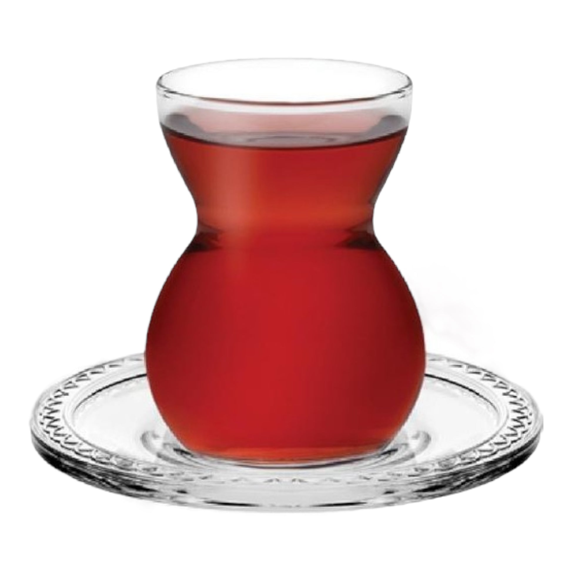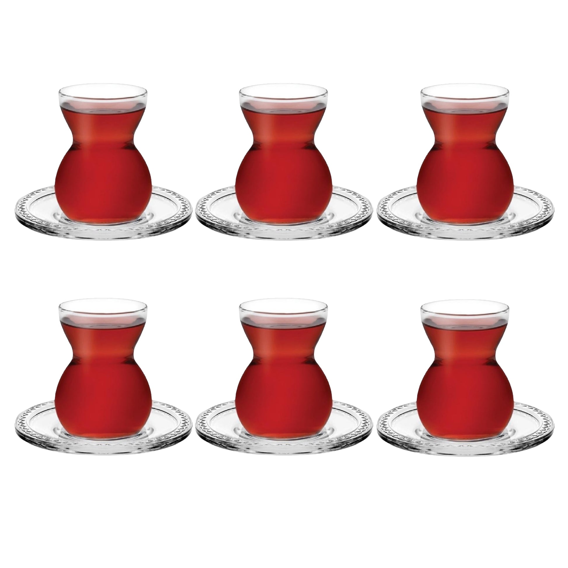 🫖 Paşabahçe Etnik Teegläser-Set (12-teilig) – 6 Teegläser & 6 Untertassen