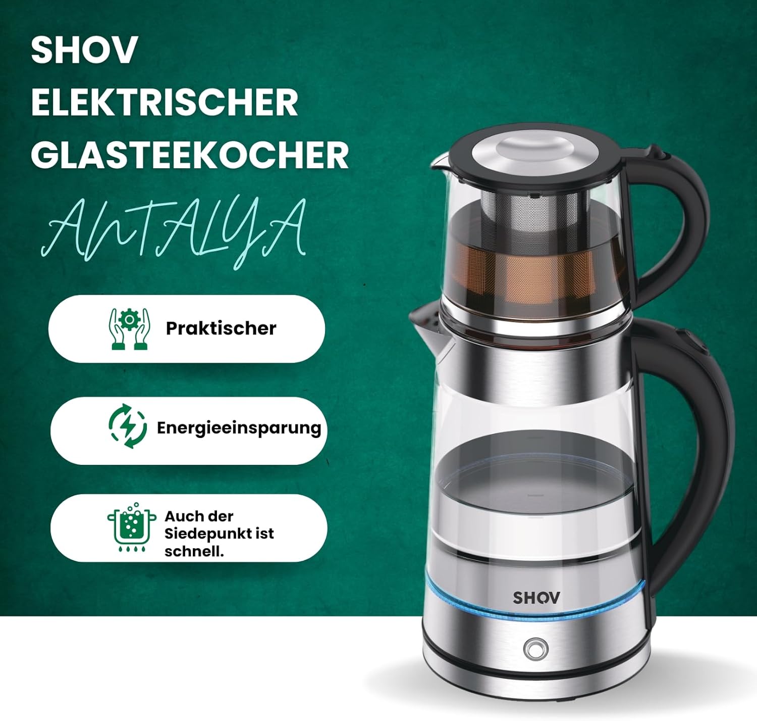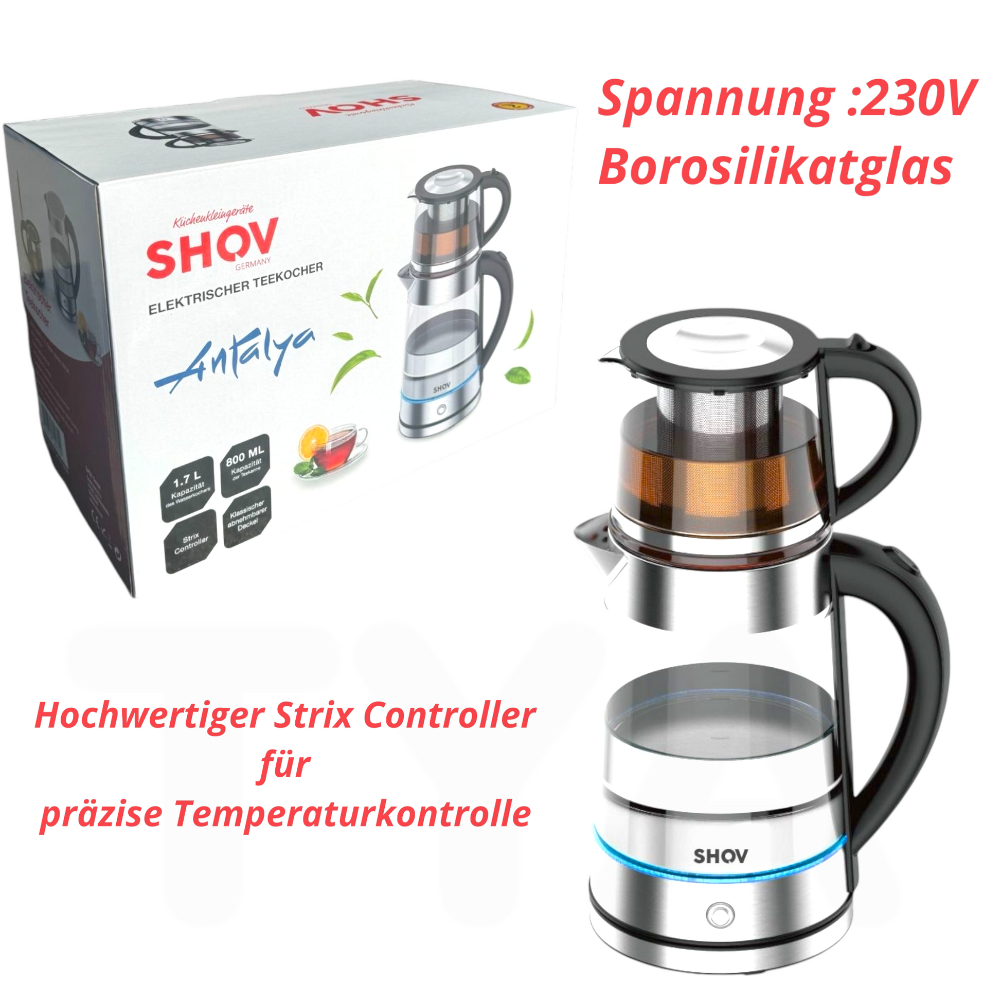 SHOV Elektrischer Glasteekocher 0,8-1,7L 2200W