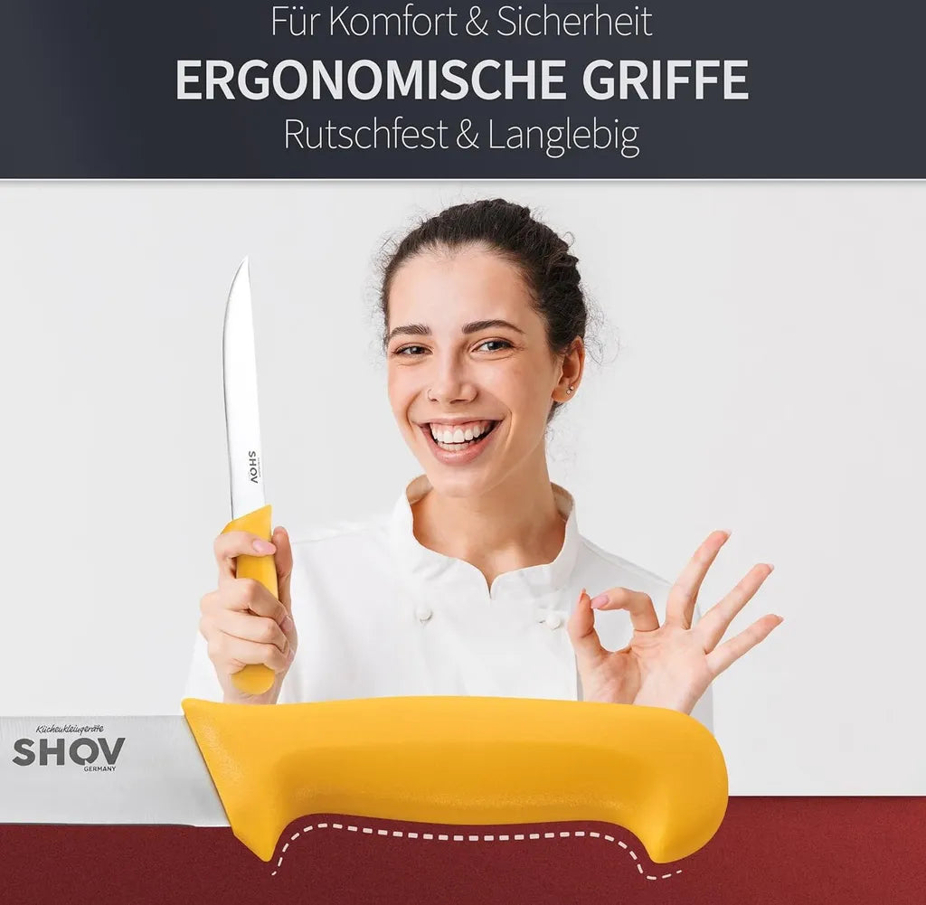 Erleben Sie unvergleichliche Präzision und Vielseitigkeit mit dem SHOV Küchenmesser Set – Ihrem perfekten Begleiter für alle Schneidaufgaben in der Küche!